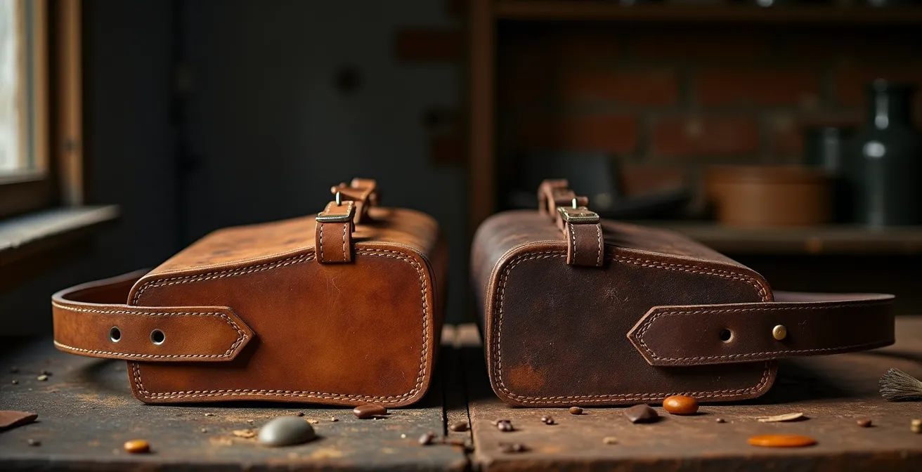 Un esempio iconico è la cucitura a punto sellaio, una tecnica manuale che utilizza due aghi e un unico filo, creando una struttura a incastro incredibilmente resistente. A occhio nudo, si distingue per la sua leggera diagonale, impossibile da replicare a macchina. Trovare una cucitura di questo tipo su una borsa è una garanzia quasi certa di lavorazione manuale e di un prodotto costruito per durare. Allo stesso modo, una pelle pieno fiore tinta a mano non avrà mai un colore perfettamente omogeneo. Mostrerà sfumature più intense o più delicate a seconda di come il pigmento è stato assorbito, rivelando la storia e la struttura unica di quel pezzo di cuoio.